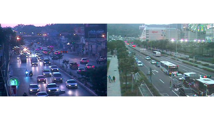 Antipodes is built around a deceptively simple premise. Take two points on the earth’s surface, as far away from each other as it is physically possible for them to be, and watch them, unblinkingly, for a year. It is an exercise in attention, a kind of aesthetic surveillance; it is also a study of opposites. Antipodes are both locations and anti-locations. They are united by the mutual fluke of their geographical positioning. But distance, as the project demonstrates, is not always the same as difference. Through the pairing of these public cameras – cameras which have no awareness of the yearlong conversation in which they are taking part; which are, in a sense, being ‘hijacked’ – remarkable parallels emerge, and suddenly that gulf of separation (roughly 7,926 miles, if you were to travel directly through the earth) collapses, becomes no separation at all. As the sun sets in one camera, it rises in another. São Joaquim’s loss is Sakurajima’s gain. The orange dusk that hangs above the urban clutter of Porto Alegre abruptly shelves to pallid dawn where it meets the Fukuoka sky, but notice how the dark hills in the distance merge with those of their antipodean counterpart, and, rather than the diametric opposition one might expect from such far-flung localities, there is a sense of seamless contiguity, a blending of horizons.