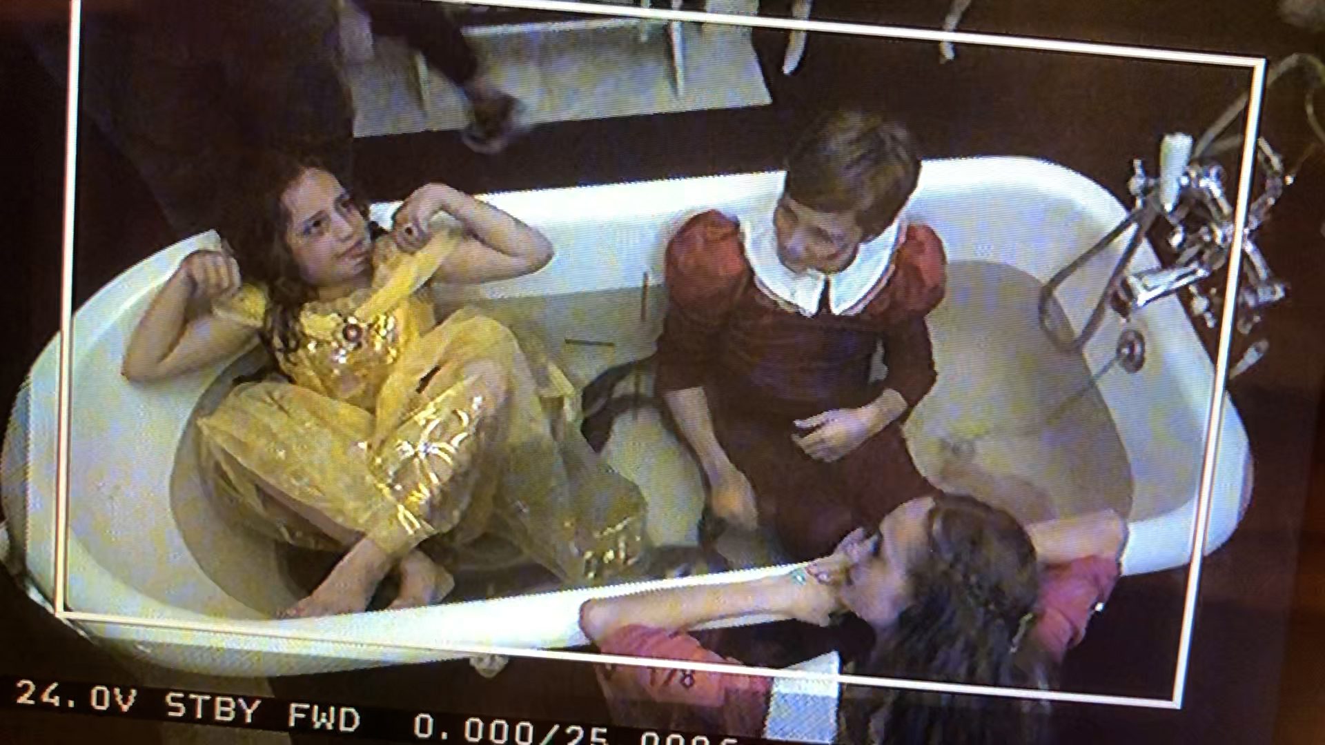 The film was shot at Waddesdon Manor and begins as Crow and the children encounter each other in the Arcadian splendour of its grounds. As the children leave the garden (trooping past an ornate fountain of Pluto and Proserpina like ragamuffin von Trapp kids in Disney togs), they follow Crow into the house, and enter a dream-like play-space where dress-up pretend games cohabit with increasingly grown-up fantasies. Asked to act out the tale of ‘Sleeping Beauty’ in front of the painted panels depicting scenes from the story in the Bakst Room inside Waddesdon, they gamely perform to Crow’s demanding instructions, and go on to dance to her tune, only to fall by the wayside, one by one, as if in a mad bout of musical chairs.
