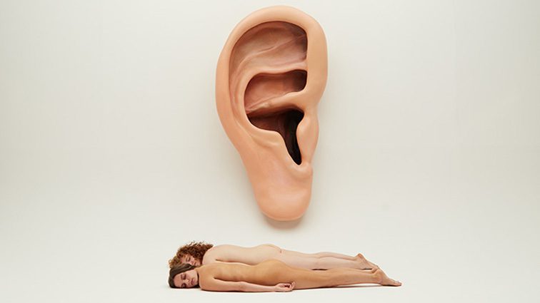 A thread that has run throughout Starr’s oeuvre, from her earliest works up to Quarantaine, is her extraordinary attentiveness to sound. A childhood experience of auditory hallucinations spurred early works that tuned in to the possibility of voices embedded within incidental sound, while acts of overhearing inspired pieces such as Mentioning (1993) which set fragments of strangers’ conversation into musical form. The uncanny plaint of the sound work Mum Sings Hello (1993-2009), in which an answerphone recording of the artist’s mother singing the iconic Lionel Ritchie hit is serially dubbed from cassette to cassette so that it descends with each iteration into howling white noise, locates this investment in listening firmly in relation to the maternal voice. And if Quarantaine enters into the mechanism of film in a way that summons the spirit of early cinema, it does so with the crucial addition of a highly developed sonic dimension - precisely what was lost when film first incorporated theatre. This is palpable in Pearl Mama One’s vocalisations in music and speech, and in the ecstatic choral performance that accompanies a sequence in which formless ‘Pink Material’ oozes and drips (with its intimation of an oral training facilitated by bubblegum). That the passage into Quarantaine’s liminal spaces is at the service of what Starr elsewhere refers to as ‘the birth of female voice,’ is evident in the fact that in the film’s initial sequences, the characters are effectively muted. Perhaps the key image of the film makes clear the preeminence of sound within its imagined world: when ‘V’ and ‘L’ pass from ‘The Grey Reception’ into the spaces of initiation, they do so by climbing naked through a huge ear. Listening affords a second cut into the body of film; within Quarantaine’s universe it is the means by which a sorority attending to maternal callings might be formed.